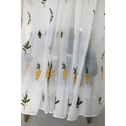 Teljes Kész függöny Marlenca lenn hímzett Sárga zöld Virágos minta 280x250cm termékleírás