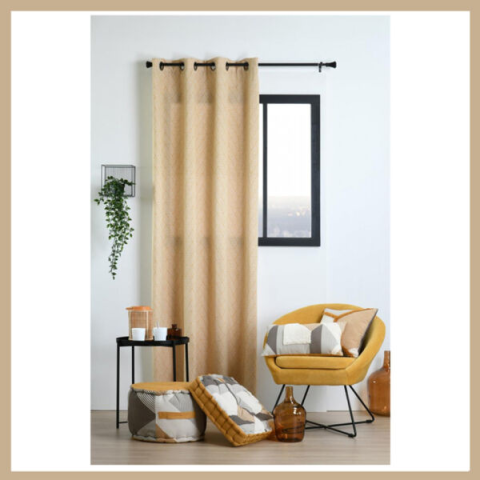 Készfüggöny 140x260 mustár R6D155001- Mosógépben maximum 30 fokon tisztítható- Méret: 140x260- Súly: 0,917 Kg- Anyag: 70% pamut 30% poliészter - Szín: mustárEz a modern és grafikus függöny kortárs hatást kölcsönöz dekorációjának.A kép illusztráció.