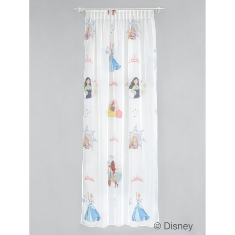 PRINCESS / 01 140 cm x 245 cm Disney fehér alapon hercegnőmintás fényáeresztő függöny ráncolószalaggal, összetétele 100 % poliészter.