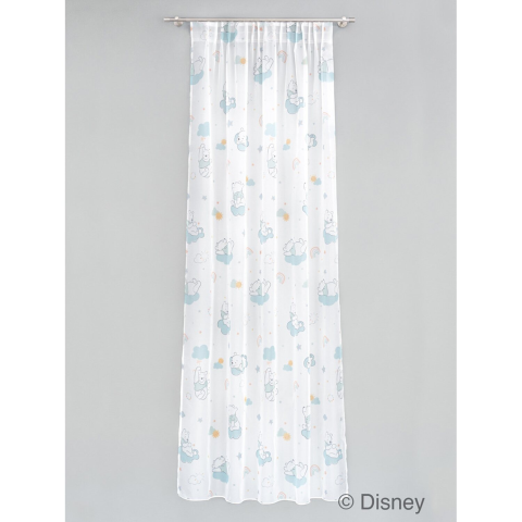 WINNIE / 01 140 cm x 245 cm Disney fehér alapon Micimackómintás fényátersztő függöny ráncolószalaggal, összetétele 100 % poliészter.