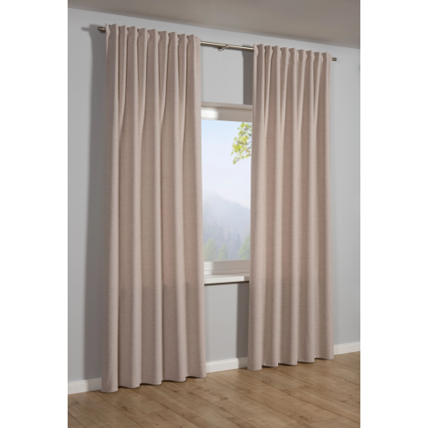 Univerzális függönyszíjjal, beépített rejtett hurkok függönysínre akasztáshoz vagy rúdhoz.