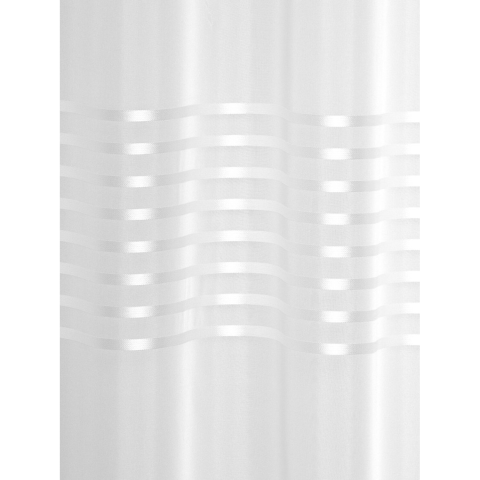 SISSY / 01 140 cm X 245 cm fehér alapon fehér csíkos fényátersztő függöny ráncolószalaggal, összetétele 100 % poliészter.