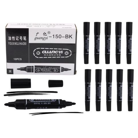 Praktikus készlet 10 fekete, kétvégű markerrel, gyorsan száradó és vízálló tintával a tiszta és tartós jelöléshez. Minden marker két heggyel rendelkezik, így készíthet finom részleteket és széles vonásokat is különféle felületeken – a műanyagoktól és fémektől kezdve a fán át egészen a kőig.Ezek az univerzális, kétvégű markerek ideálisak műhelybe, irodába és kreatív projektekhez. A tinta gyorsan száradó, elkenődés- és fakulásálló, ezért a fe