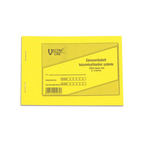 Készpénzfizetési számlatömb. VECTRA-LINE. A/6 méretű, fekvő formátumú, 25 lapos, 3 példányos. 3 soros + 1 sor az összegző. Minőségi belívvel, karton fedlappal rendelkező nyomtatvány. Tartós tűzött kötéssel, kiváló átírási képességgel és perforációval rend