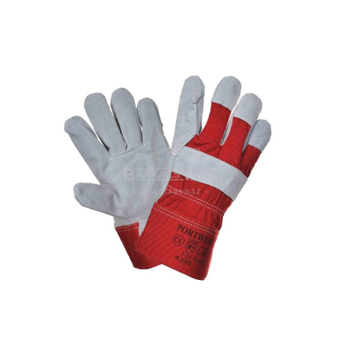 Alapanyag: Hasított marhabőr, kevertszál. Gumírozott biztonsági mandzsetta, ujjperc védelem, szellőzést biztosító pamut kézhát.