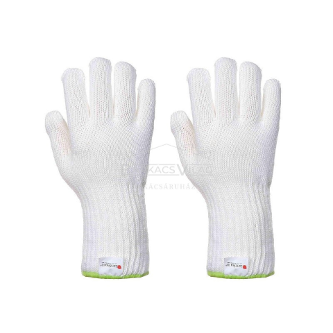 Alapanyag: Meta-Aramid, Pamut. Élelmiszeripari és catering felhasználásra ideális védőkesztyű. Extra hosszú mandzsettával rendelkezik, mely kimagasló védelmet biztosít. Egy standard méretben készül. 250 ºC kontakt hő ellen nyújt védelmet.