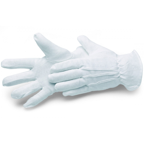 Pamutkesztyű tenyéroldalon pettyekkel, nagyon könnyű, extrém kényelmes viselet, különösen alkalmas festési munkákhoz. CAT 1.