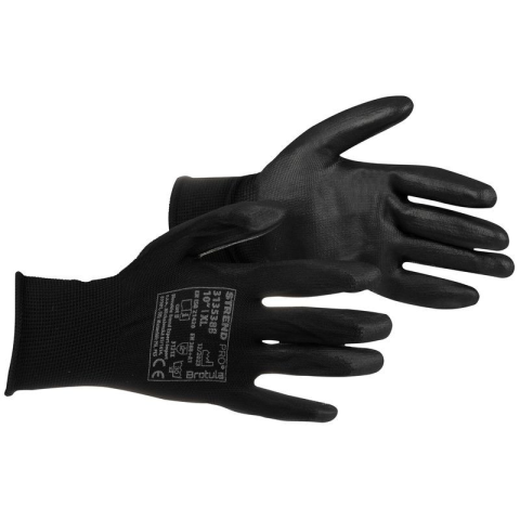 A Brotula kesztyű fekete, varrás nélküli nejlonkötésből készült. A tenyér és az ujjak vékony fekete poliuretán réteggel vannak bevonva. ÚJ KIVITEL = új, jobb minőségű változat, nagyobb anyagvastagsággal és nagyobb kényelemmel munka közben - buborékcs