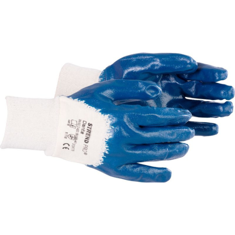 A Strend Pro Dante kesztyű pamutból készült, rugalmas kötésű. A tenyér és a hátoldal 3/4 részben kék nitrilbe van áztatva. Olajálló. Úgy tervezték, hogy megvédjék a bőrt a mechanikai veszélyektől, 3111X védelmi szint (az EN388:2016+A1:2018 szerint).