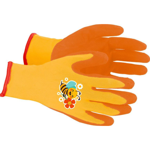 1 kép Kesztyű Strend Pro, gyermek, lány, méhecskés, narancssárga, kerti, bliszteres, 3-as méret