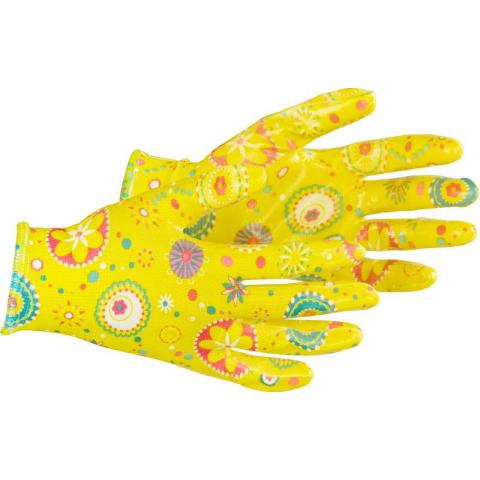 A Strend Pro Abelia kesztyű tenyere szürke nitrilréteggel van bevonva. A munkavégzés ezekben a kesztyűkben kényelmes, mivel légáteresztő, könnyű, vízálló és kiváló tapintást biztosít az ujjakban. Elsősorban kerti és háztartási takarítási munkákhoz kés