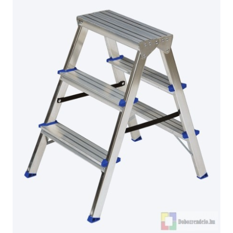 Összecsukható, helytakarékos, alumínium fellépő. Könnyű, stabil vázszerkezet. 2 oldtalt járható 3 fokos fellépő.