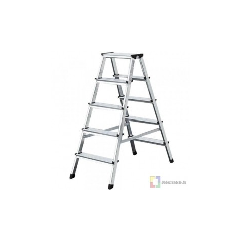 Két oldalon járható alumínium állólétra, két biztonsági hevederrel. Könnyű, de stabil profilok. Alumíniumból 80 mm... Két oldalon járható alumínium állólétra, két biztonsági hevederrel. Könnyű, de stabil profilok. Alumíniumból 80 mm széles bordázott, c