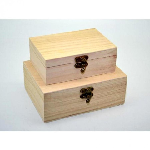 Két különböző méretű natúr fadobozt tartalmazó készlet.