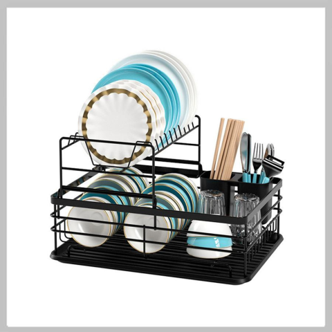 Két szintes konyhai edénytartó, csepegtető holm8498OKOS TÁROLÁS - Ez a két szintes edényszárító helytakarékos kialakítással rendelkezik, így több helyet szabadít fel a konyhapulton. Az állvány levehető, így tökéletesen rendszerezheti és száríthatja rajta a mindennapi konyhai eszközeit, mint például tányérok, poharak, tálak, kések és villák. A rendezett és tiszta konyhapult garantált! MASSZÍV KIALAKÍTÁS - Az edénytartó erős, rozsdamentes krómozott drót