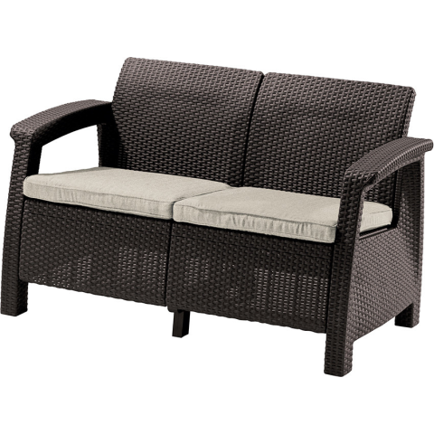 Keter Corfu love seat kétszemélyes polyrattan kerti kanapé - barna kerti bútor termékleírás