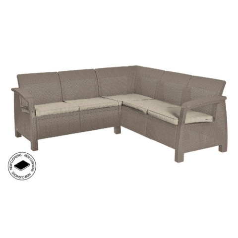 KETER CORFU RELAX polyrattan kerti sarokkanapé - cappuccinoA KETER CORFU RELAX sarokkanapé nagyon modern és kényelmes bútor, mely kül - és beltéren egyaránt használható. A polyrattan anyagnak köszönhetően masszívabb és ellenállóbb a bú