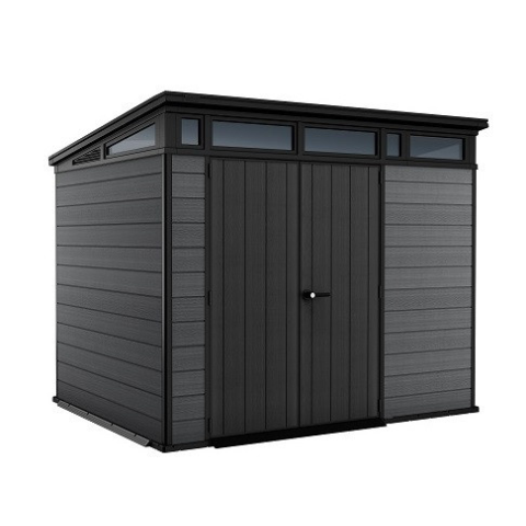 KETER CORTINA 9x7 MŰANYAG KERTI HÁZ, TÁROLÓ - szürke/antracitA karbantartást nem igénylő CORTINA 9x7 ház egyedi EVOTECH anyagból (fa-műanyag) készült, robusztus felépítésű és duplafalú.Masszív kialakítású tetővel, széles dupla