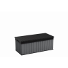 Kültéri kerti láda, térfogat 380 l, minőségi Evotech anyag, időjárásálló, víz- és UV-álló, a fedél biztonságos nyitása a hidraulikus dugattyús rendszernek köszönhetően, 2 ülőhely a zárás után. Szürke színben. Bővítse ki a tárolóhelyet a kertben, terasz