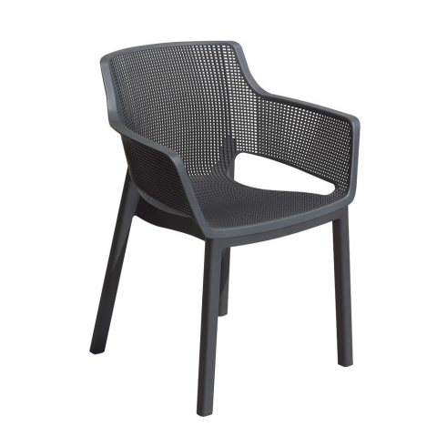 KETER ELISA polyrattan kerti szék, grafitA KETER ELISA bel- és kültéri széke egy modern, letisztult, polyrattan anyagból készült bútor. Az asztal anyagának köszönhetően ellenálló az időjárási viszonyok ellen és az UV sugárzásnak is.