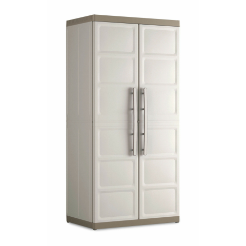 Karbantartásmentes szekrény sokoldalú felhasználásra garázsban, műhelyben és háztartásban, 4 polc egyszerű beszerelése, 1 polc teherbírása 25 kg, lehetőség lezárásra, magas ellenállás. Minőségi műanyag. Bézs. A karbantartásmentes Keter Excellence XL H