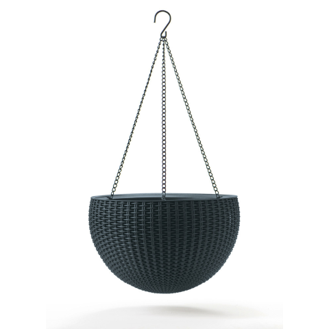 KETER HANGING SPHERE polyrattan függő virágcserép - grafitA KETER HANGING SPHERE polyrattan anyagból készült függő virágkaspó bel- és kültéren is remekül mutat. Ez a nagyon modern kialakítású virágkaspó anyagának köszönhetően ellen