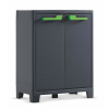 Karbantartásmentes szekrény kültéri és beltéri használatra, 2 polc egyszerű beszerelése, 1 polc teherbírása 30 kg, magas lábak a padlók egyszerű tisztítására, lehetőség lezárásra, magas ellenállás. Minőségi műanyag. Fekete. A karbantartásmentes Keter