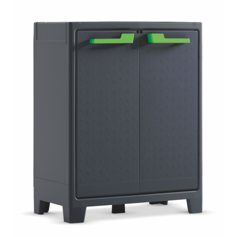Karbantartásmentes szekrény kültéri és beltéri használatra, 2 polc egyszerű beszerelése, 1 polc teherbírása 30 kg, magas lábak a padlók egyszerű tisztítására, lehetőség lezárásra, magas ellenállás. Minőségi műanyag. Fekete. A karbantartásmentes Keter