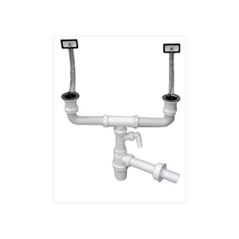 1 kép Kétmedencés mosogató búraszifon, + 2 leeresztô + 2 túlfolyó + mosogép csatlakozó (STY-539-1)