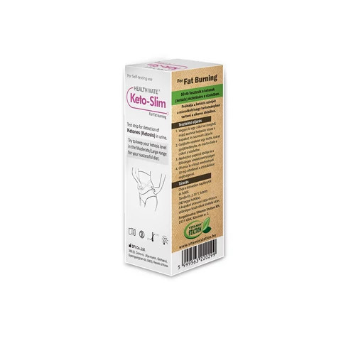Kiszerelés: 50 db Keto-Slim reagens csíkok a vizelet elemzéséhez. A HEALTHMATE® Keto-Slim önellenőrzésre használható gyorsteszt. Jól használható diéták, illetve zsírégető mozgásformák kontrollálására. A tesztcsíkok a vizeletbe mártás után a ketonszint mér