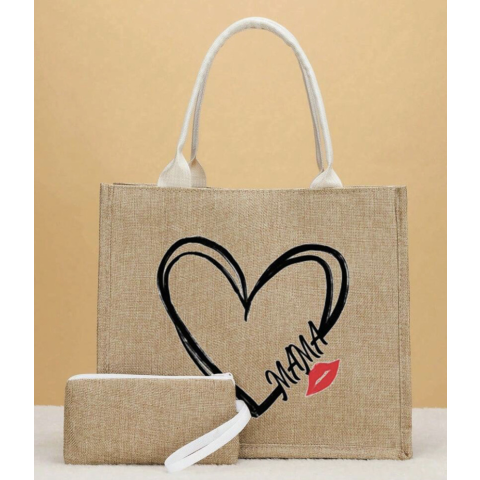 1 kép Kétrészes vászon kézitáska - Szív dizájn, Mama