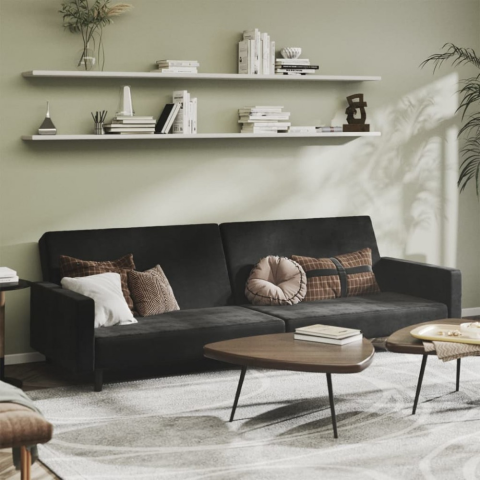 Kétszemélyes fekete bársony kanapéágy bútor 1 kép