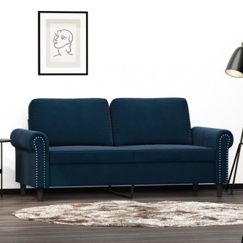 Kétszemélyes kék bársony kanapé 140 cm bútor termékleírás
