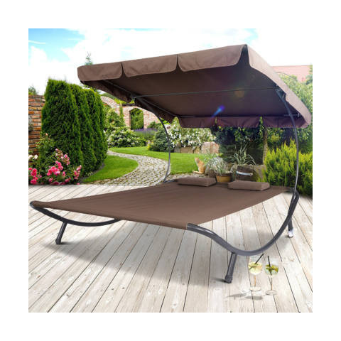 Teljes Kétszemélyes napozóágy árnyékolóval, sötét barna termékleírás