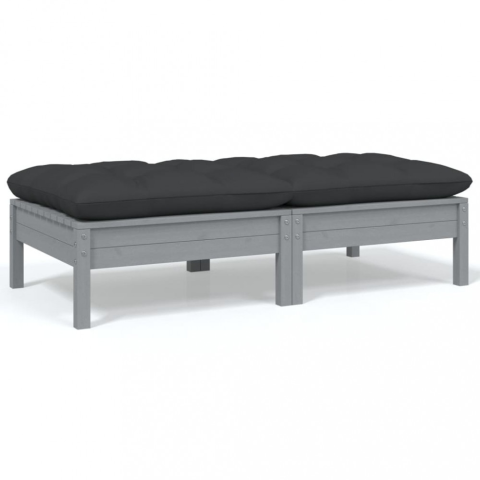 Teljes Kétszemélyes szürke tömör fenyőfa kerti kanapé párnákkal termékleírás