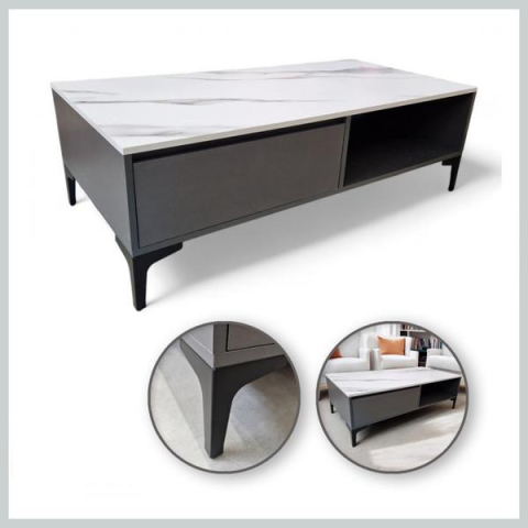 1 kép Kétszintes dohányzóasztal – 120x60x40 cm, fehér-márvány és grafit színben – STL17