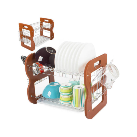 Termékleírás: ️ A dupla emeletes álló konyhai szárítófa fa alapanyagból készült, barnára festett. A stabil szerkezet kényelmesen nagy tálcaalappal rendelkezik, ami megakadályozza, hogy a víz lecsepegjen a pultfelületre és ne károsítsa a bútorokat. Az álló