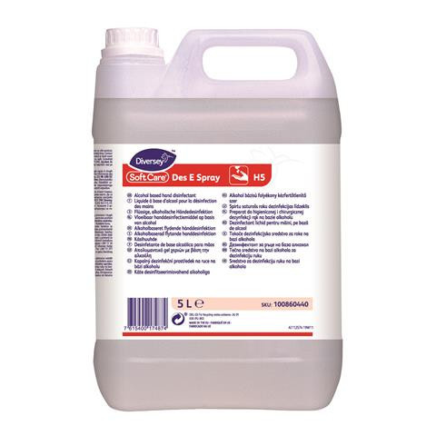 Kézfertőtlenítő folyadék, alkoholos, 5 l, DIVERSEY Soft Care Des E Spray A Soft Care Des E Spray egy víz nélküli fertőtlenítésre használható, alkoholos kéztisztító, mely szórófejes használatra is alkalmas. Egészségügyi és élelmiszer-feldolgozó környeze
