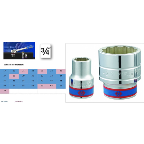 Kézi dugókulcs fej 3/4" 12 szögű 36 mm dugókulcs árgrafikon