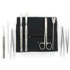 Termék jellemzői: - cordura táskában - rozsdamentes acél kézi műszerek - 9 db-os Tartalma: - Gombosszonda - Gombosszonda pillangó - Szike egyenes pengével - Szike hasas pengével - Anatómia csipesz - Horgas csipesz - Horog éles - Csipesz vékony végű 12cm-
