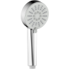 Kézi zuhany 3 funkcióval. A gyártó által megadott alapméretek - átmérő: 9 cm. A csaptelep térfogatárama 11,4 liter / perc.