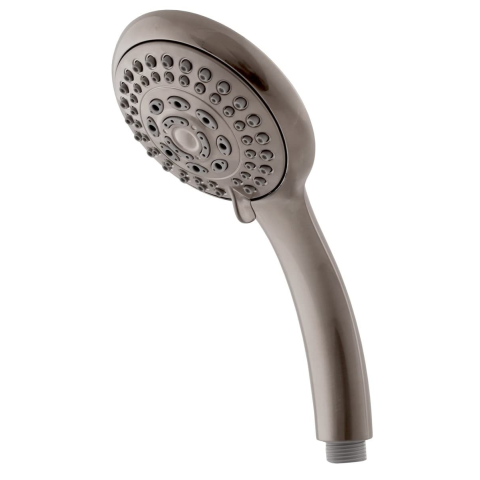 Kézi zuhany 5 funkcióval. A gyártó által megadott átmérő 11 cm. Áramlási sebesség 9 liter/perc.