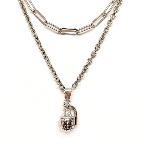 1 kép Kézigránátos medál dupla lánccal, ezüst színű