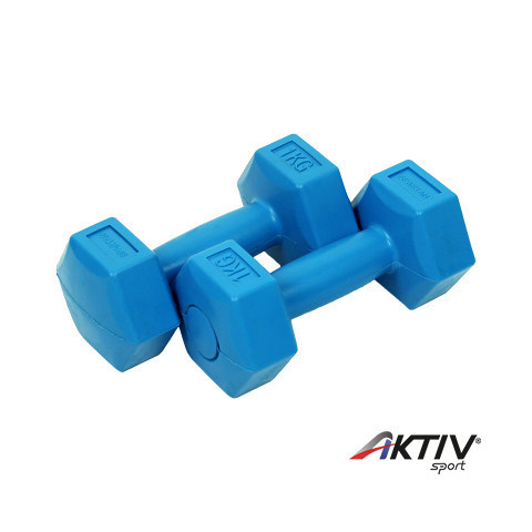Műanyag bevonatú cementes kézisúlyzó. Technikai adatok: - Anyag: műanyag, cement - Szín: kék - Súly: 2x1 kg