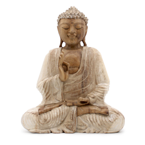 Kézműves Buddha Szobor - 30cm Oktató - Fehér Súrolt dekoráció 1 kép
