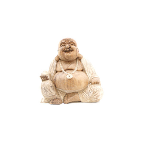 Kézműves Buddha Szobor - 40cm Boldog - Fehér Súrolt dekoráció 1 kép