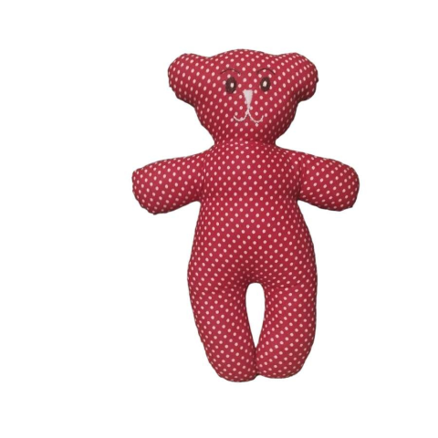 Kézműves piros pöttyös maci plüssfigura 1 kép
