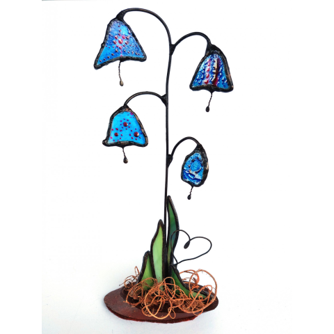 1 kép Kézzel festett üveg harangvirág fa talapzaton 10×24 cm