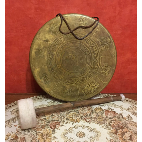 1 kép Kézzel készített 7 fémes mantrával díszített tibeti gong - 26 cm