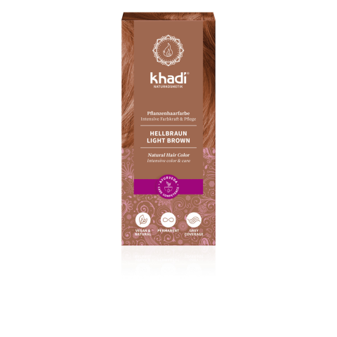 Khadi bio hajfesték por világosbarna 100 g Világos, meleg barna árnyalatot kölcsönöz, vöröses csillogással erős fedés még ősz hajszálakon is erősíti és táplálja hajad - természetes színragyogással 100%-ban természetes és vegán mesterséges összetevőktől